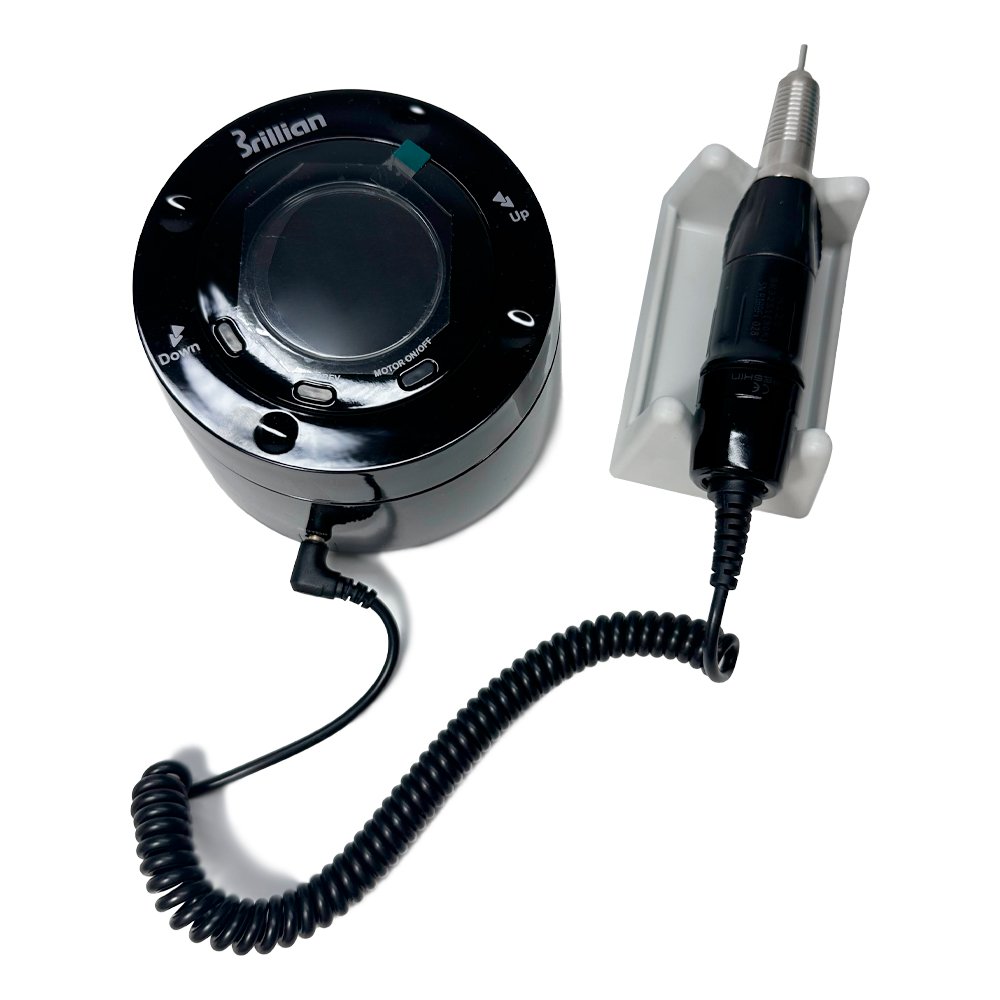 El micromotor Brillian Black tiene un diseño único con forma circular, dispone de pantalla LCD donde podemos ver información de las rpm, torque y sentido de giro que estamos trabajando.