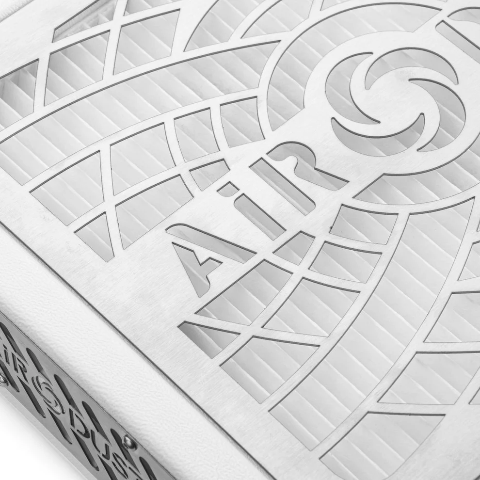 Gracias a su filtro HEPA de alta eficiencia, el AirDust retiene de forma fiable el polvo fino, protegiendo tanto al profesional como al cliente. Su diseño compacto y de perfil bajo optimiza el espacio en la mesa, mientras que su peso ligero (1,125 kg) facilita el transporte y la movilidad, incluso en espacios reducidos.