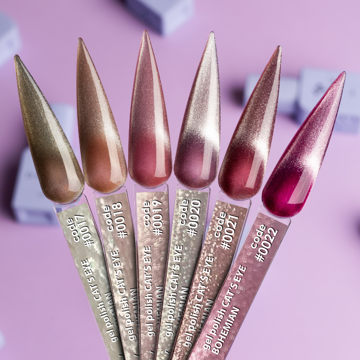 La colección Gel Polish Color Bohemian Cat Eye de DNKaʼ es una serie de 12 tonos únicos, llenos de elegancia y un inspirador efecto de «ojo de gato». Estos geles magnéticos de alta calidad te permiten crear diseños impresionantes con un brillo cristalino y profundidad que cambia según la luz y el ángulo de visión, evocando la belleza de las piedras preciosas.