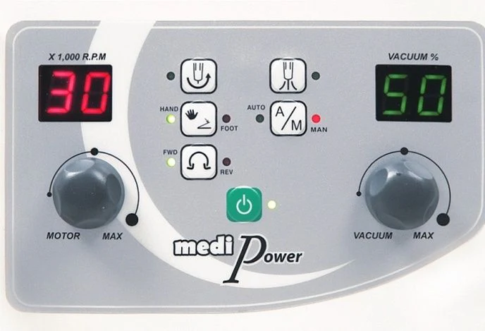 El MEDIPOWER Micromotor con Aspiración de Saeshin es un dispositivo avanzado diseñado para profesionales de la podología y la estética. Este torno destaca por integrar un sistema de aspiración directamente en la pieza de mano, facilitando la recolección eficiente del polvo generado durante los tratamientos.